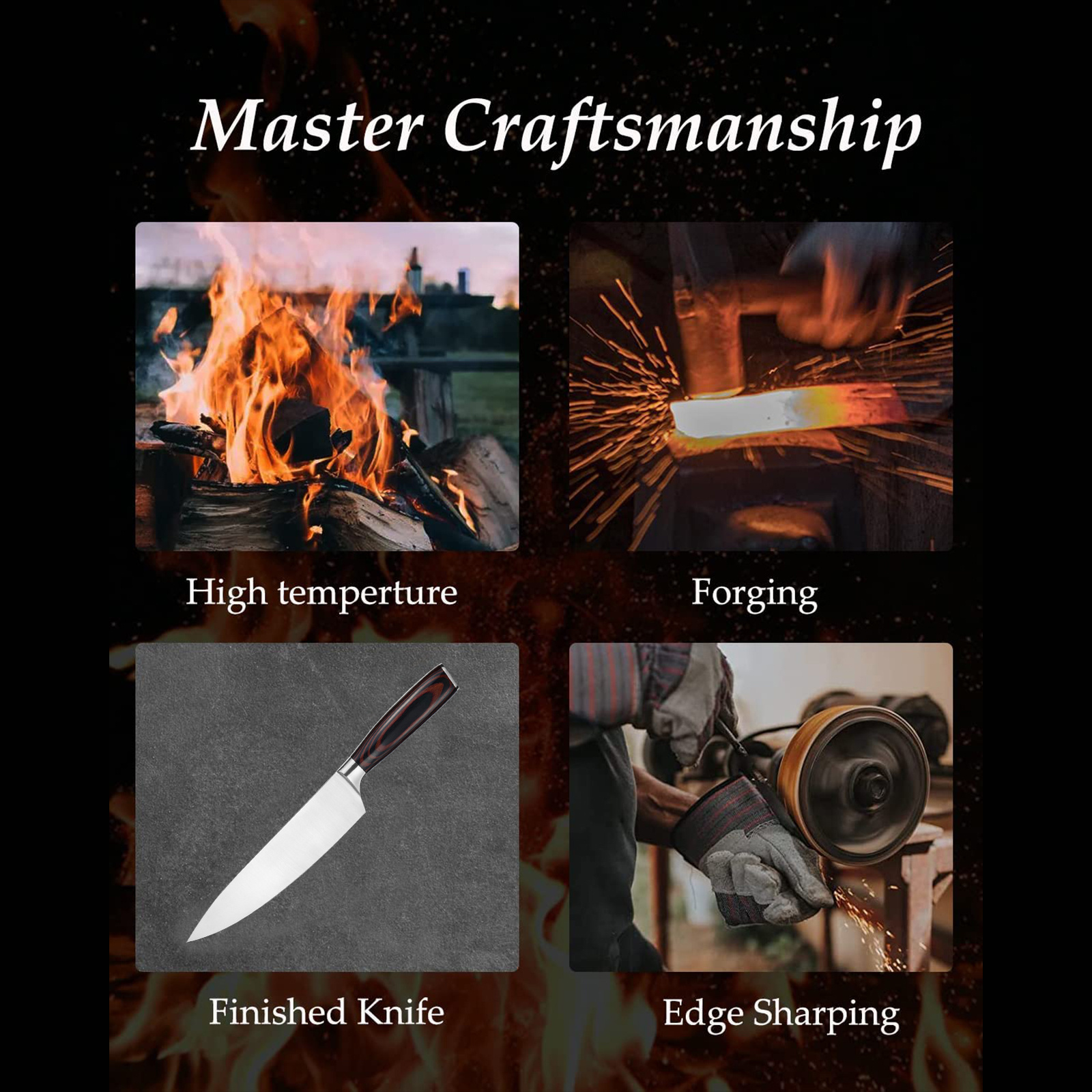 【Tips】 High-carbon steel knives are harder and sharper than ordinary stainless steel knives, but please do not use them frequently to cut hard objects, which may cause it to broken its edge; wash and dry it in time after use to prevent high-carbon steel from rusting.